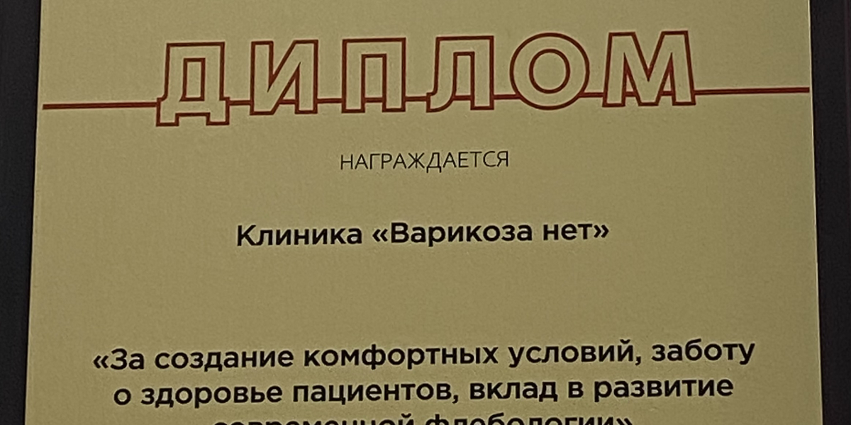 В этом году клиника «Варикоза нет» впервые приняла участие в конкурсе и сразу же была отмечена дипломом. Нас высоко оценили за создание комфортных условий для пациентов, внимательное отношение к их здоровью и вклад в развитие современной флебологии.